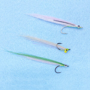 This is a very fine diameter fiber with a micro crimp and Flashabou that will mimic the scale effect of a baitfish with a realistic appearance and lifelike action in the water. It is the perfect fiber for tying thin profile flies such as Sandeels, Needlefish, and Clouser Minnow patterns.